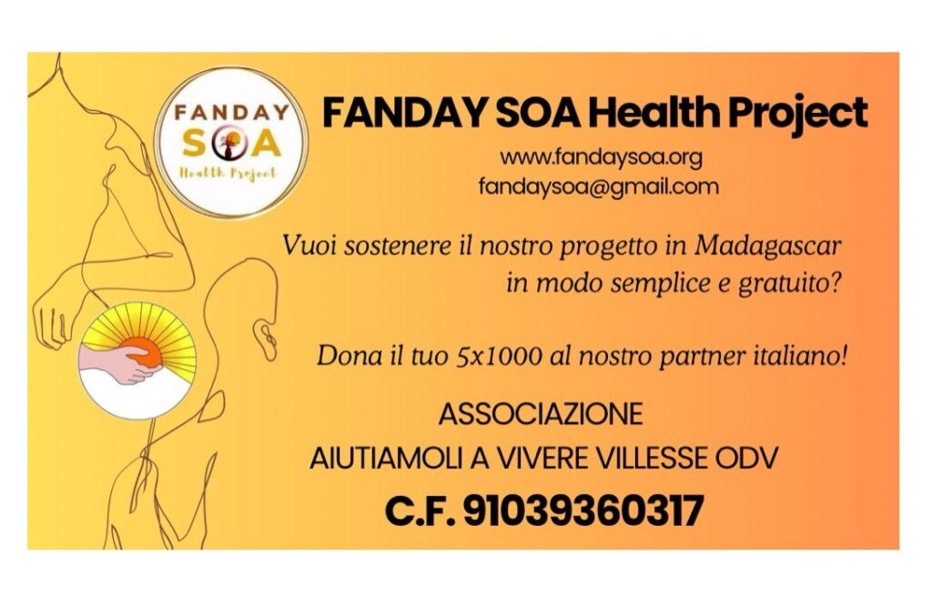 Con la tua donazione a FANDAY SOA sosterrai tutte le nostre attività e offrirai strumenti al personale sanitario locale per consentire loro di assistere e curare uomini, donne e bambini che vivono nei villaggi rurali del Sud-Ovest del Madagascar.